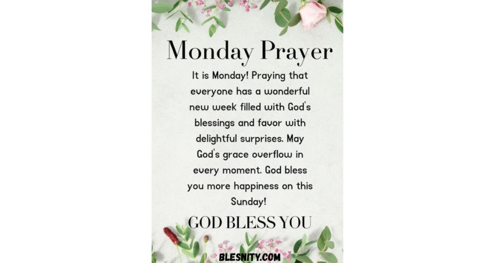 A positive Monday shapes the rest of your week. When you whisper inspiring prayers for Monday morning, you invite light, energy, and courage into every plan. Say a prayer, write a note, or speak a blessing aloud. Each action sends a wave of hope into the day. Morning light brings new opportunities, and with it comes strength to handle any challenge.